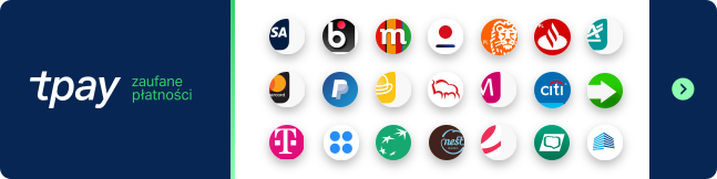 W naszym sklepie zapłacisz szybko i bezpiecznie korzystając z płatności onLine. Tpay to zaufany operator płatności! To popularny produkt Krajowego Integratora Płatności S.A., co gwarantuje pełne bezpieczeństwo i kompletną łatwość transakcji. Jako pierwsi w Polsce i jedni z pierwszych w Europie tPay wdrożył Visa Checkout, BLIK OneClick i Google Pay. Blisko 300 metod płatności ułatwia pracę zarówno tysiącom e-sklepów, które korzystają z podobnych usług, jak i ich Klientom, którzy dzięki szybkim płatnościom rzadziej porzucają koszyki zakupowe. Serwis tPay to także twórca aplikacji Fastpass – pierwszego terminalu BLIK w Twoim telefonie.