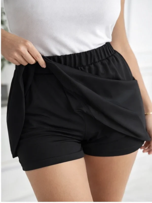 Nowoczesny model typu spódnico-spodenki, który łączy wygodę klasycznych spodenek z eleganckim wyglądem spódnicy. Z przodu zastosowano nakładaną warstwę materiału, dzięki czemu całość prezentuje się jak spódnica, a jednocześnie zapewnia pełen komfort i swobodę ruchów.